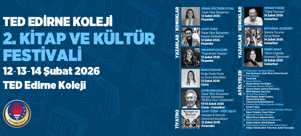 TED Edirne Koleji 2. Kitap ve Kültür Festivali, 12-13-14 Şubat 2026 tarihlerinde TED Edirne Kolejinde gerçekleştirilecek.